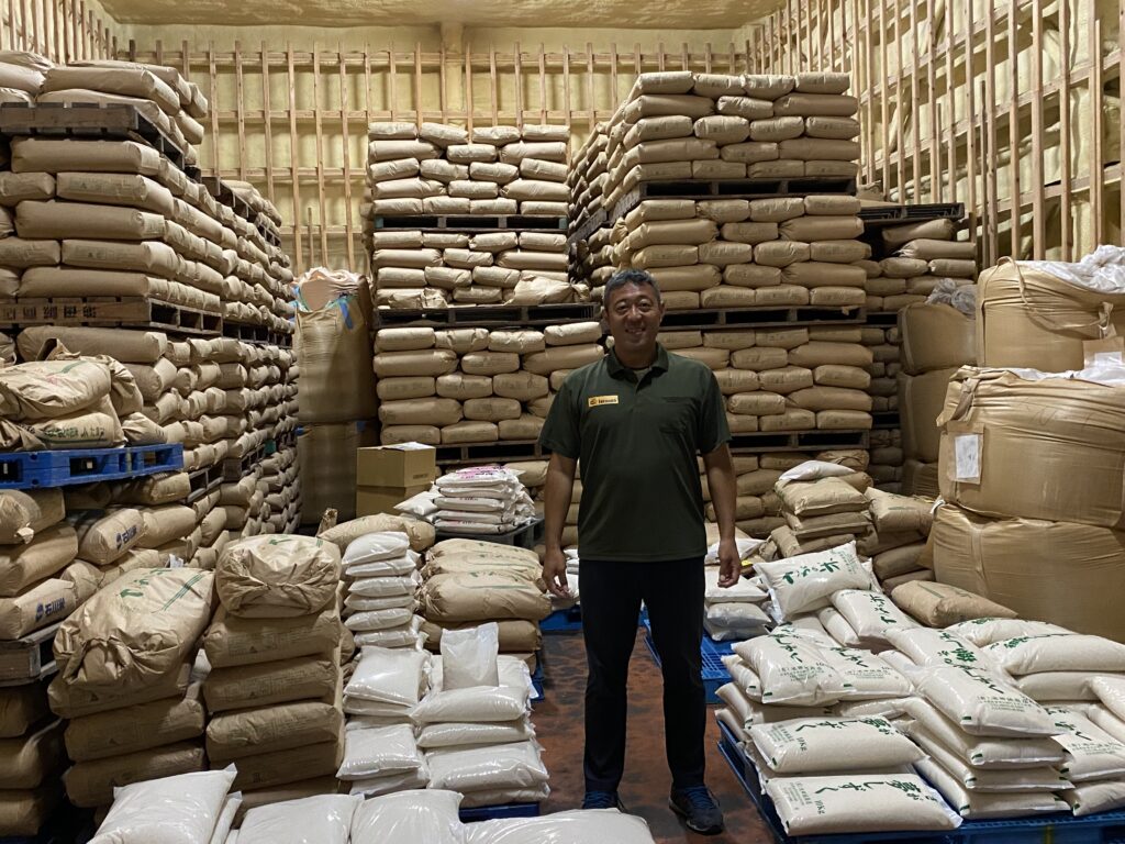 米は温度湿度を調節されながら、低温倉庫に保管されます。