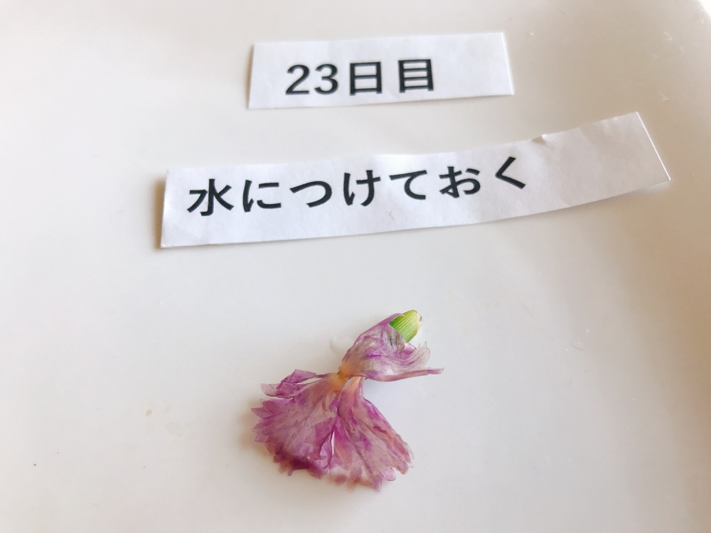 ●全体を水につけておく→23日目 先端だけ褐色化