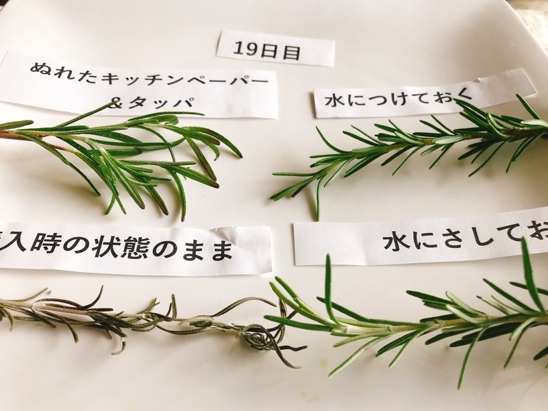 ・ローズマリー…「コップの水にさして保存袋」23日目 でもまだ元気!