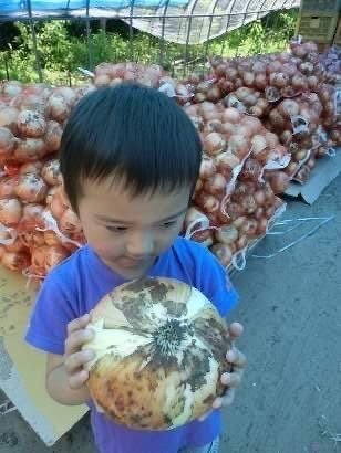 ▼細谷さんの長男くんと巨大タマネギ(細谷さんからお借りしてます)