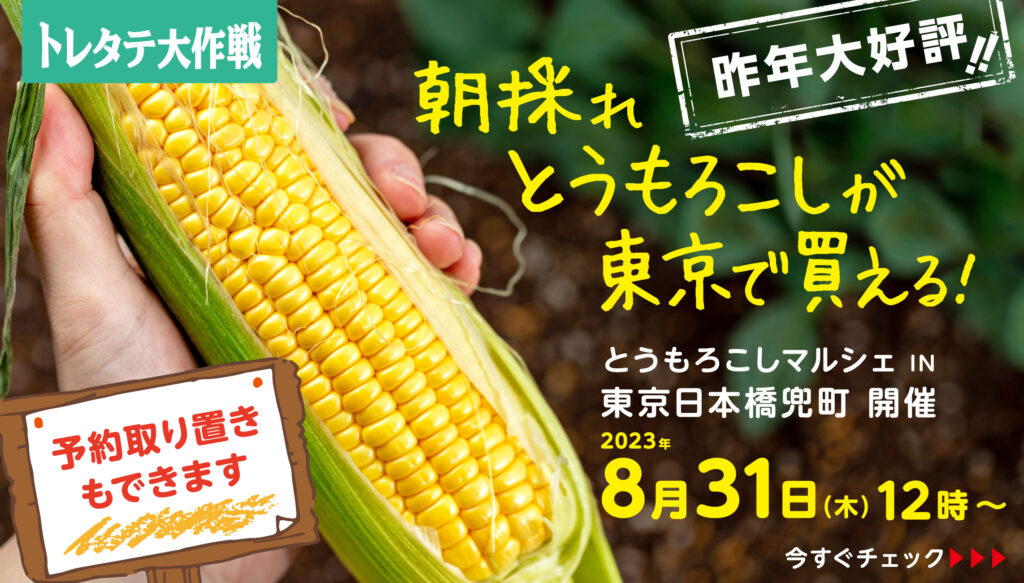 昨年大好評!収穫後0日の衝撃!トレタテ大作戦!とうもろこしマルシェ2023開催決定!