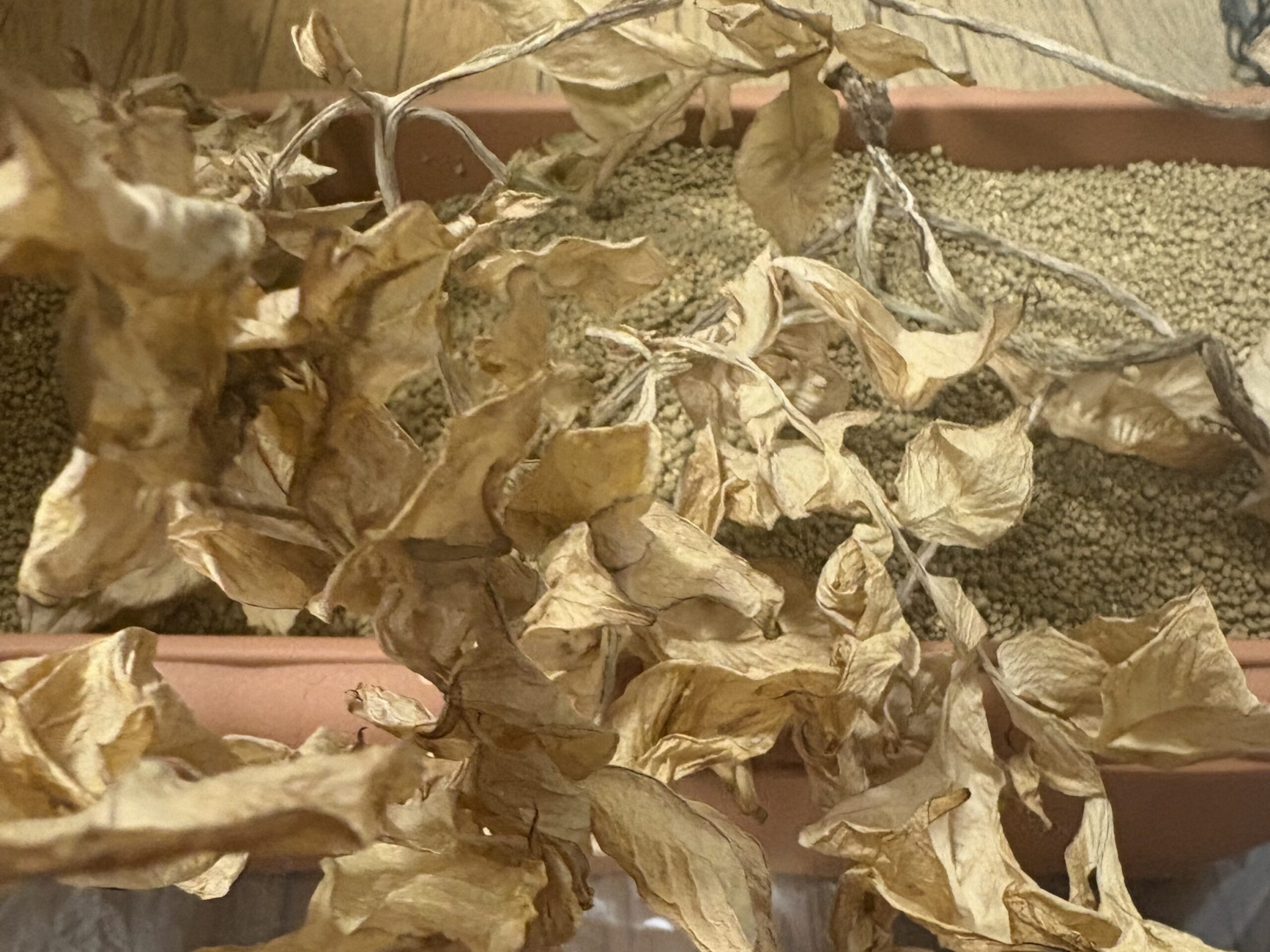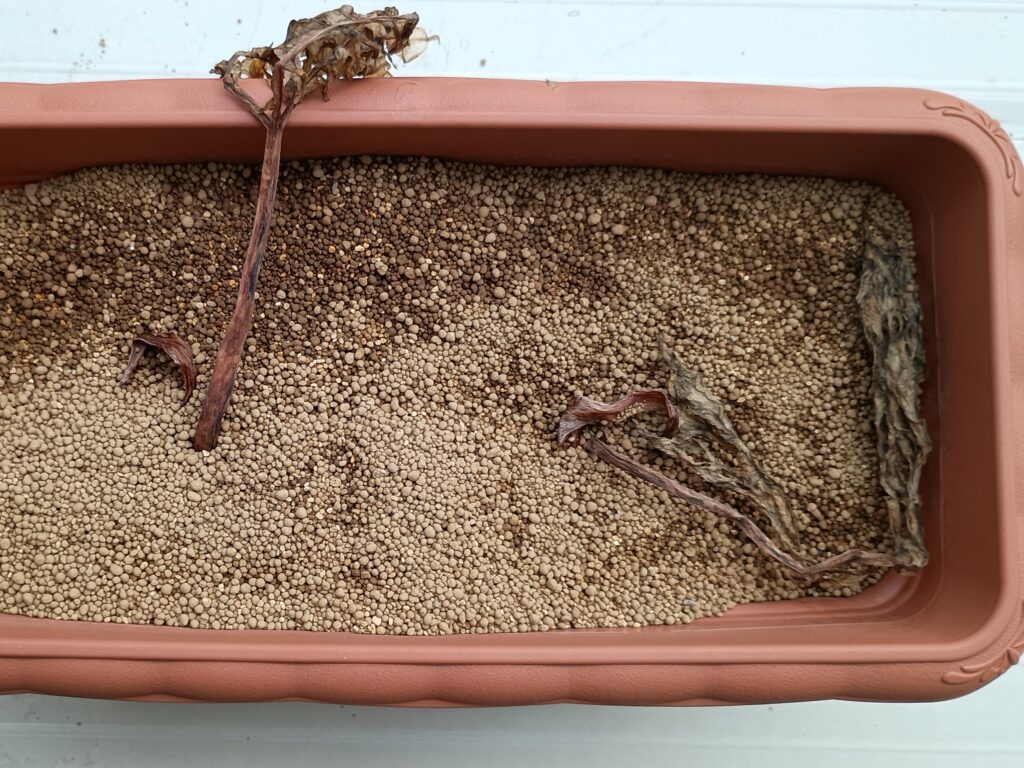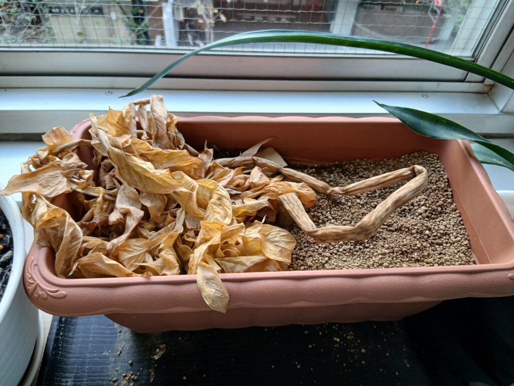 瀬下さんからは、「室内だと気温が高くて枯れるのに時間がかかること、元気な方はこのまま様子を見て、水やりはせすに枯れるのを待ちましょう」とアドバイスいただきました。