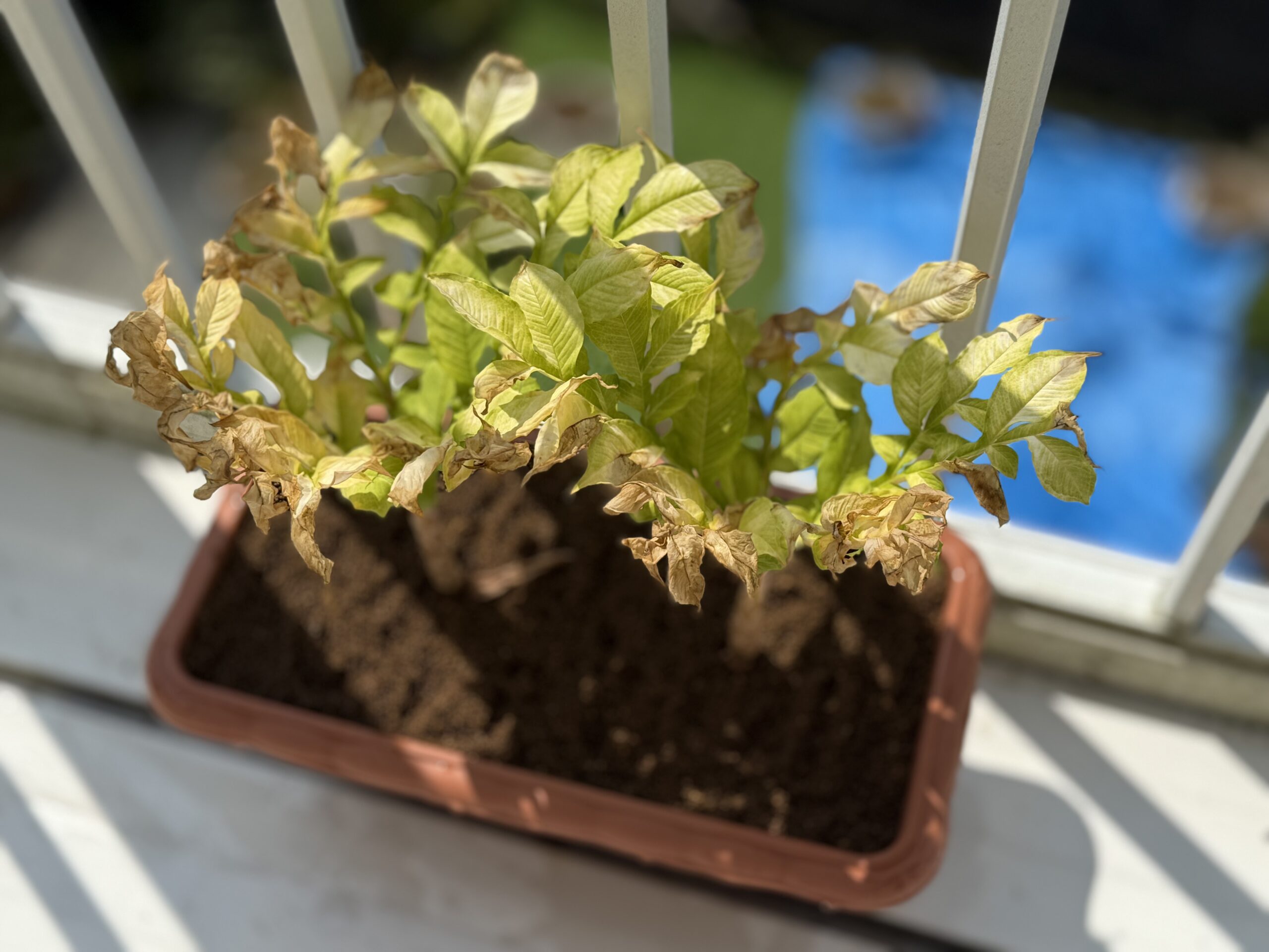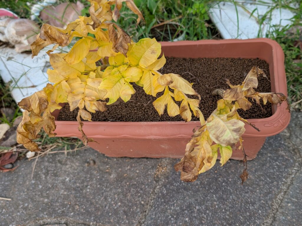 「10/2ごろから葉が黄色くなり始め、約一週間後10/9には枯れていき、約半月で10/16には茎まで枯れました。」