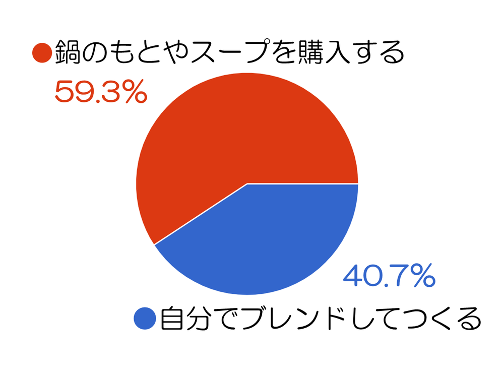 一方、約4割の人が「鍋つゆは自分でつくる派」。さすが食オタ!!自分好みの味・素材の味を追求する人も多いようですね。