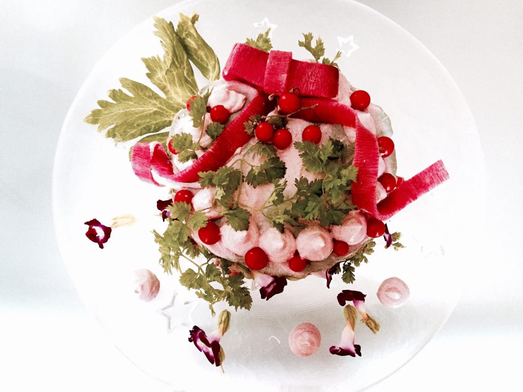 紫イモのパウダーをレモン果汁で溶いて混ぜる。