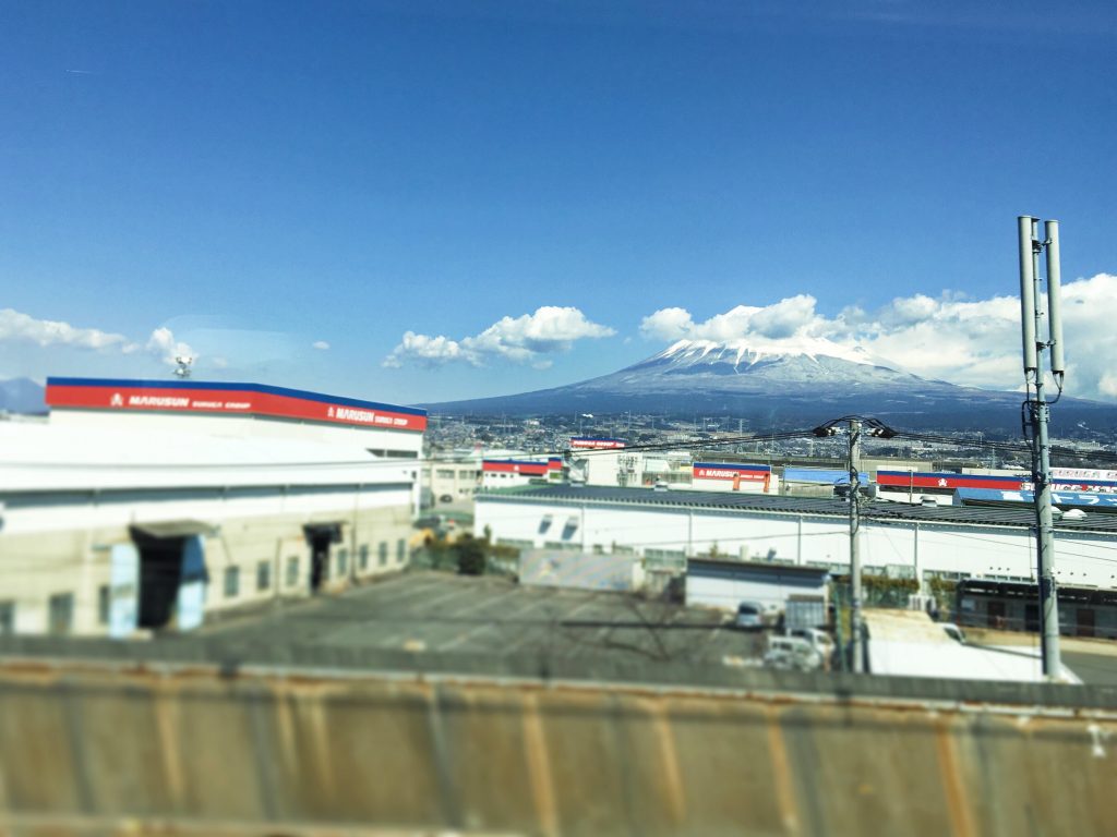新幹線の車窓からパッと現れた、富士山!!