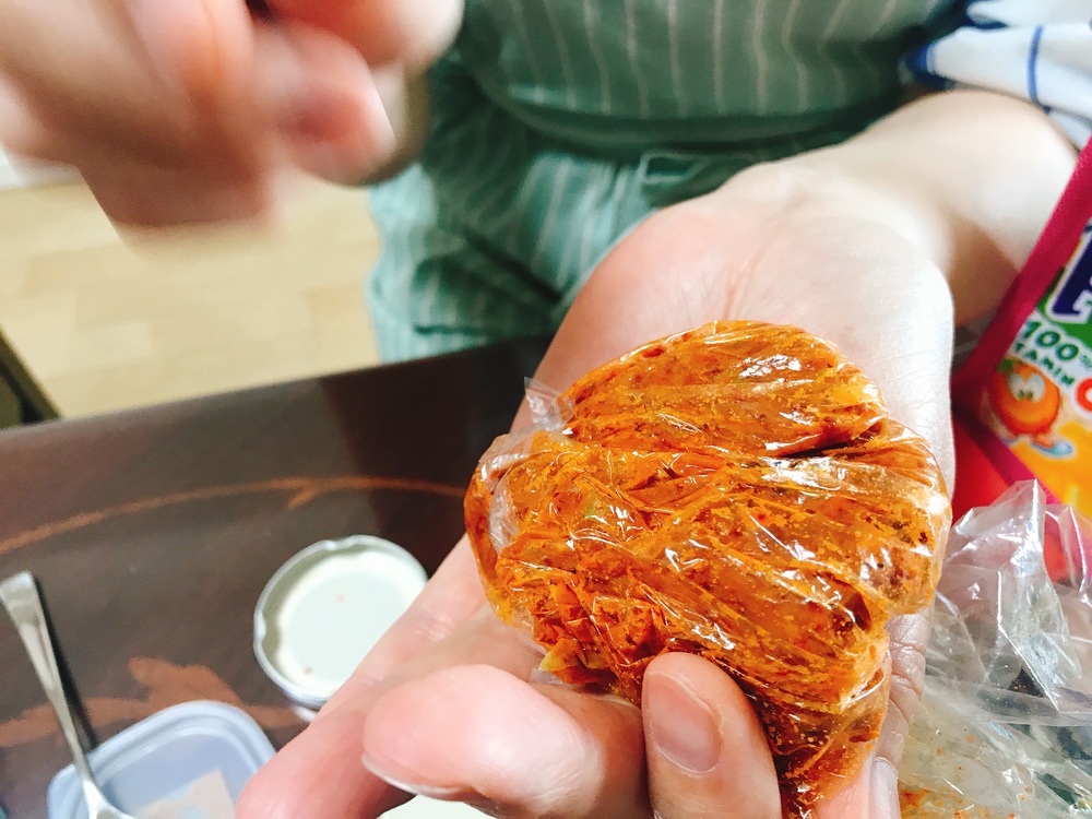 4人でワイワイ作っていたら、入れちゃいけない赤唐辛子を少しだけ入れちゃったのです(笑)