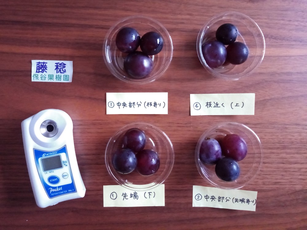 品種や房によって、糖度の低い部位が異なったのも、太陽の当たり具合によるものかもしれませんね。