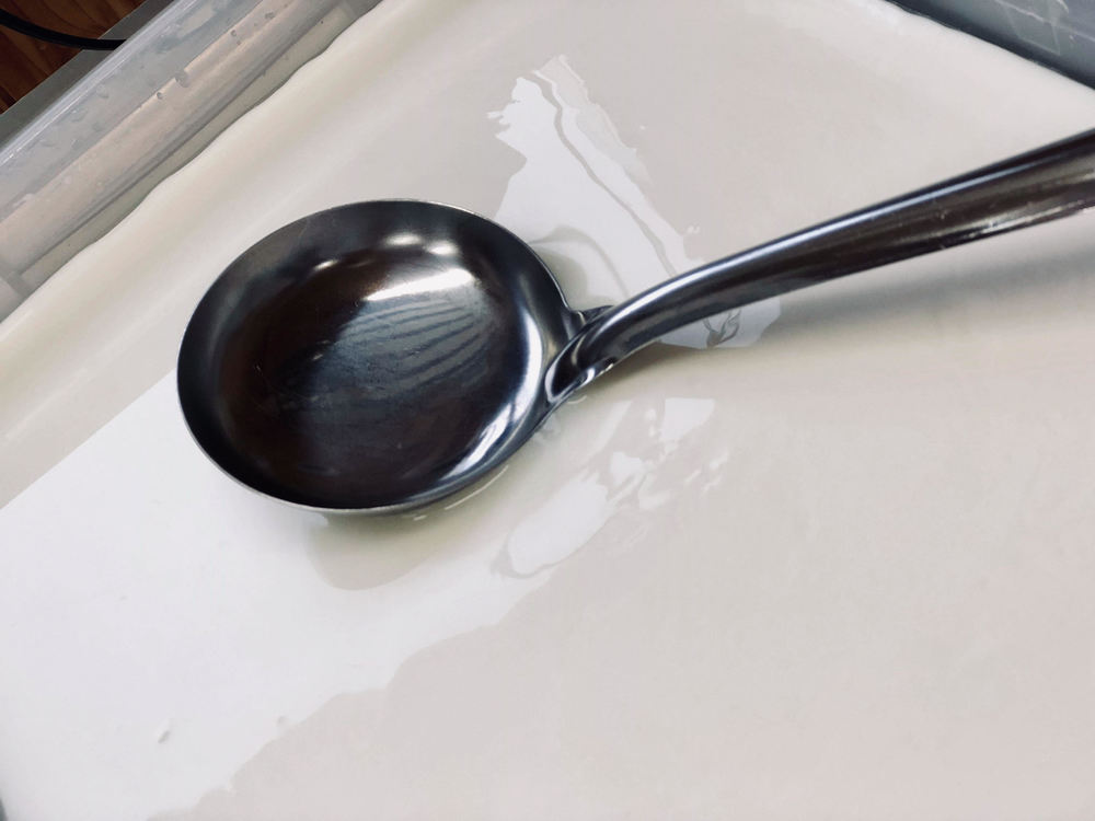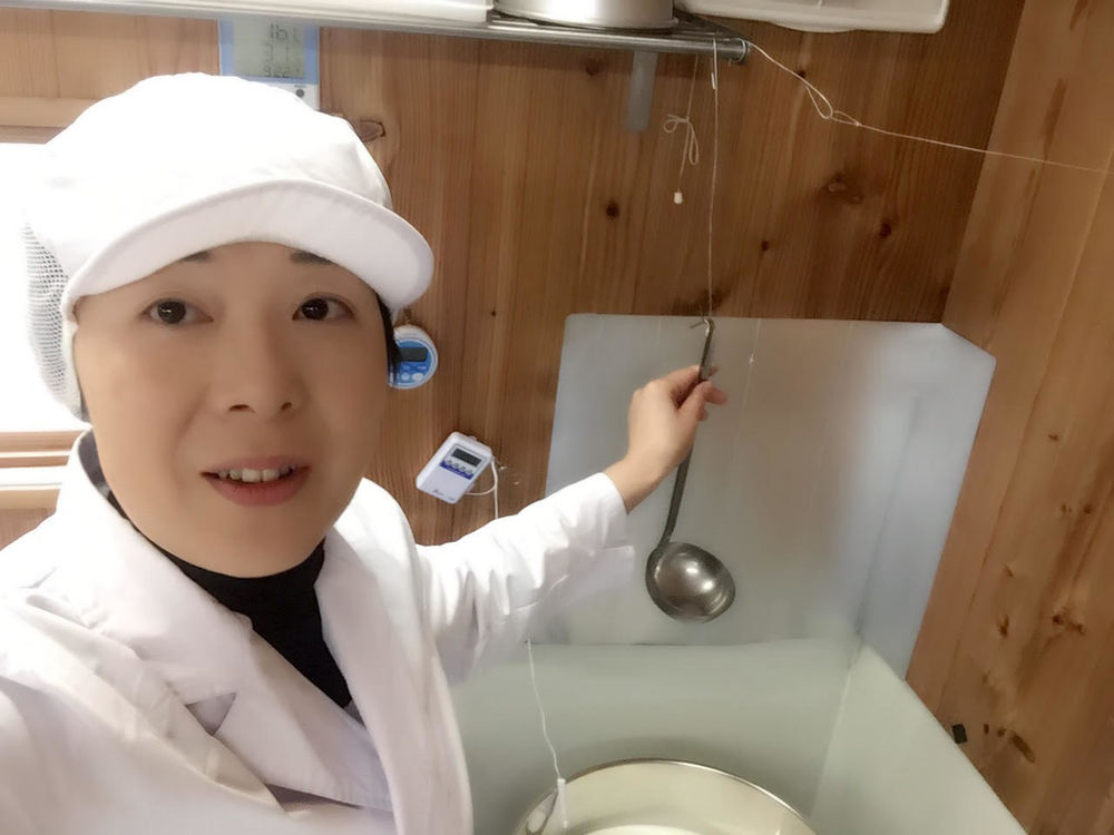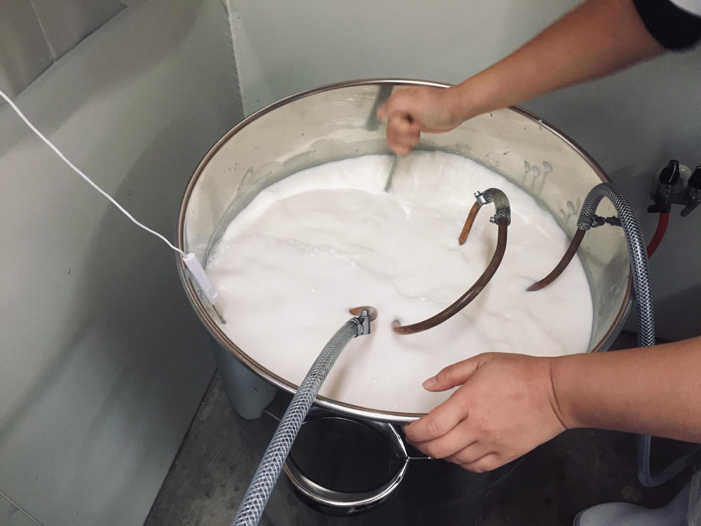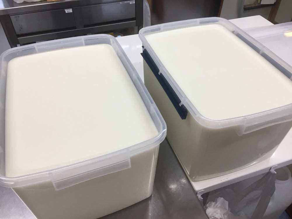この日の仕込み量は牛乳80ℓ分。