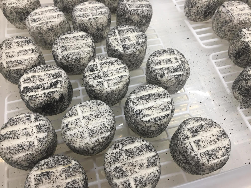 竹炭のパウダーをまぶしてから、
