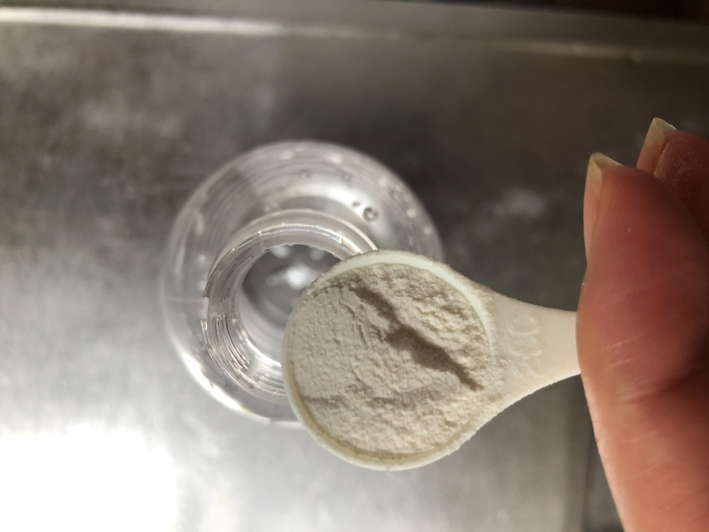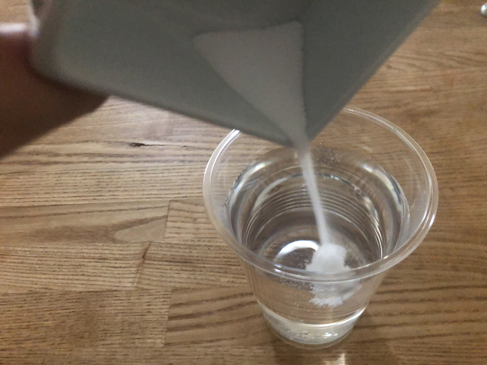 お水に乳酸カルシウムを入れてくるくる混ぜま〜す!