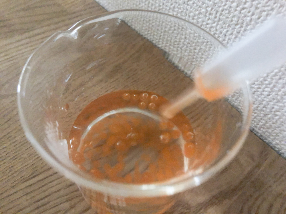 スポイトから垂らした溶液が丸くなっていく様子はとても楽しいですよ♪