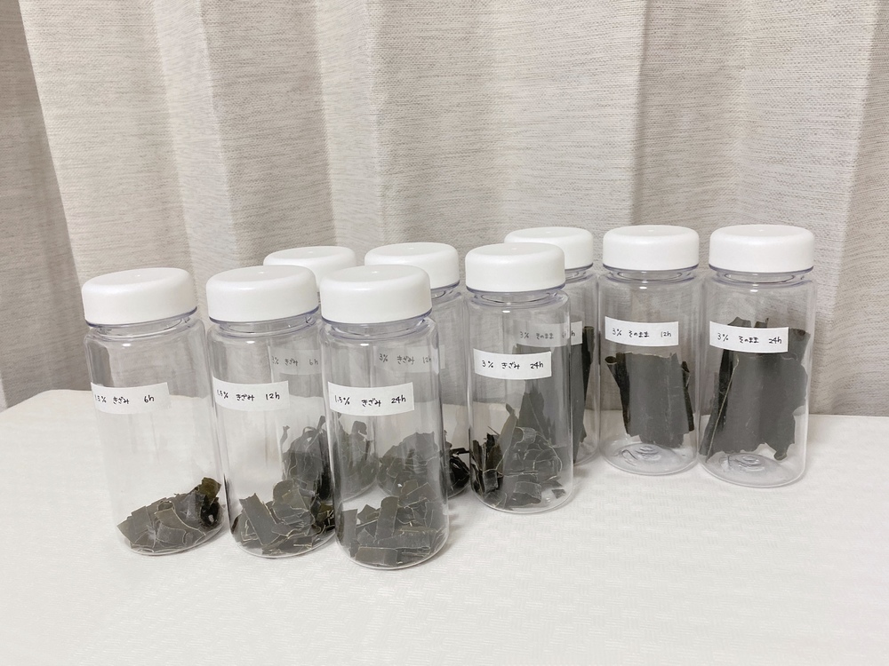 昆布だしの取り方は、実験2の一番おいしい水出しの方法で統一。
