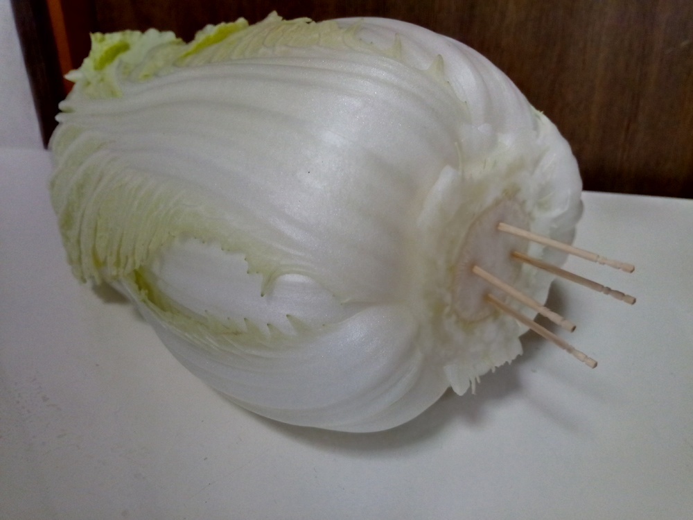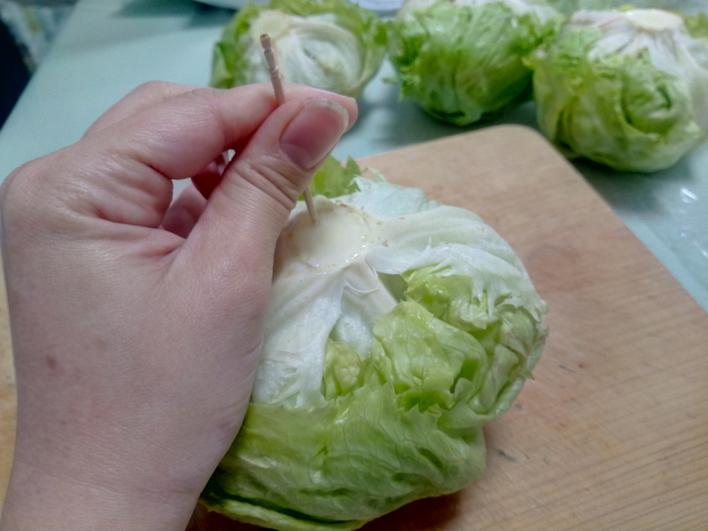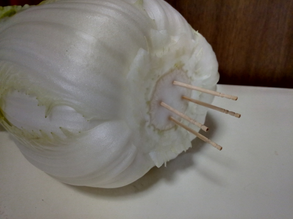 爪楊枝を刺したレタス真ん中が起き上がってないーー!!!