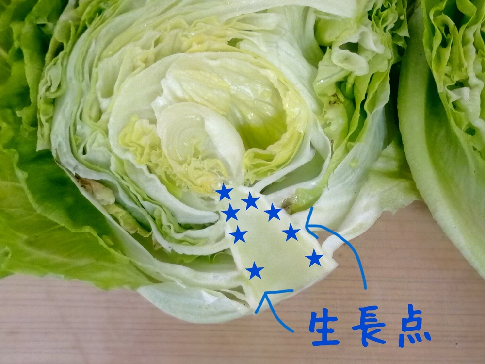 白菜もキャベツも、そしてレタスも芯のところに生長点があります。