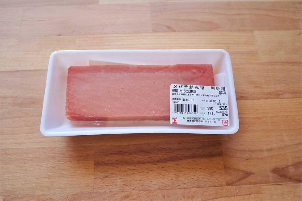 どの季節でも手軽に手に入る「マグロの赤身」「サク」で実験!