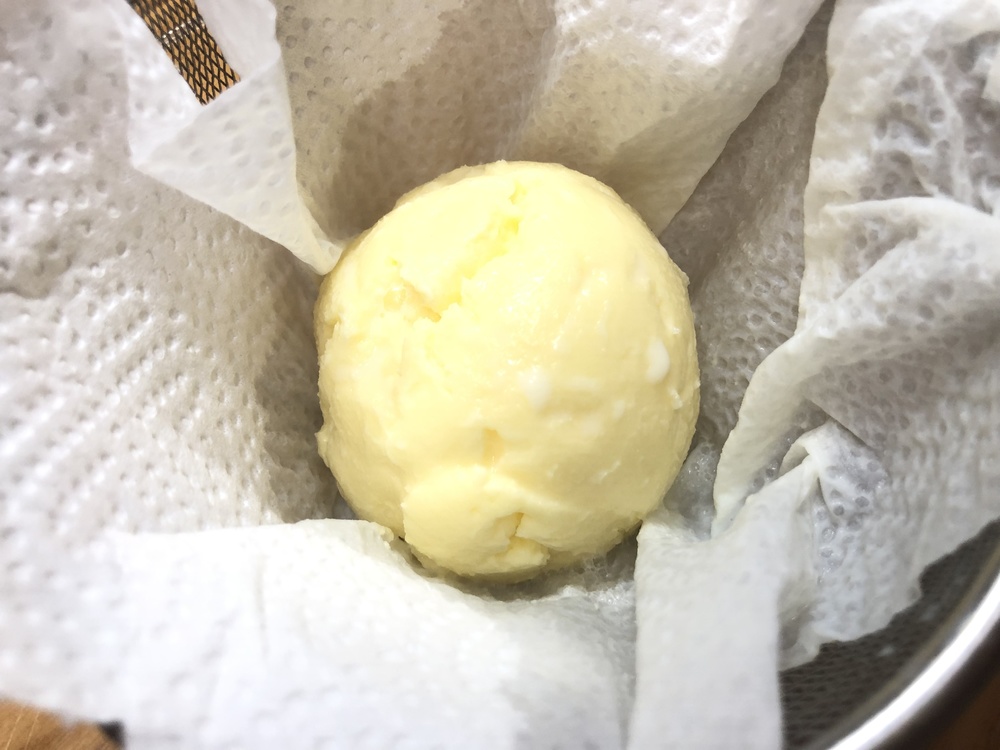 ペットボトルの中でバター(個体)と乳液(液体)で分かれてきた!