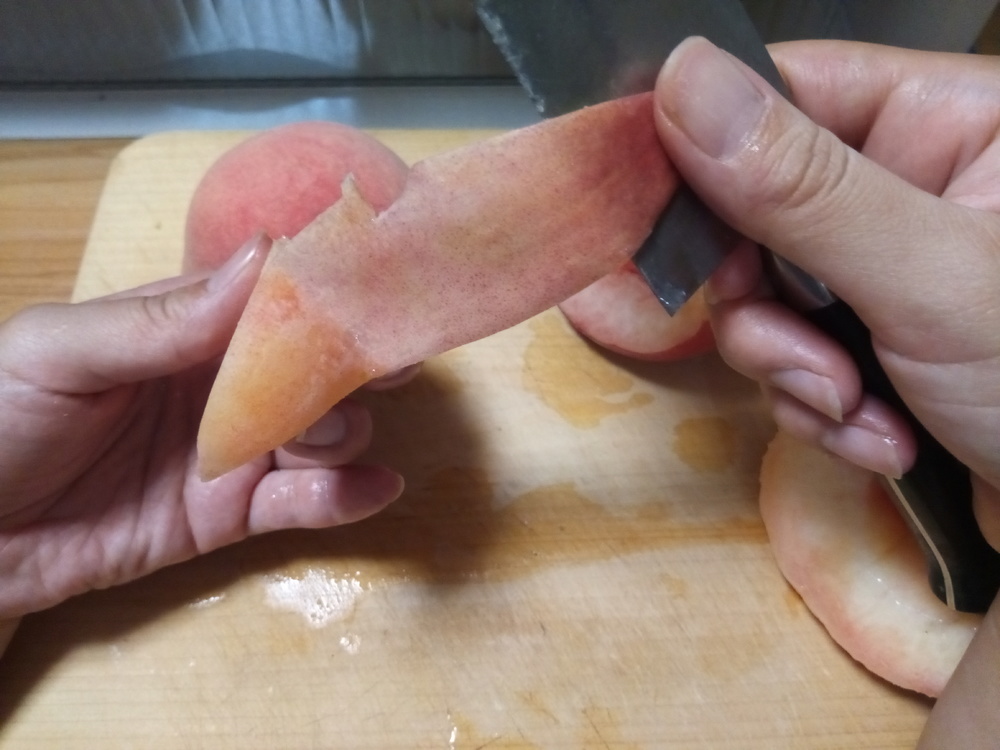 ではでは、作り方を復習しながら桃の皮を押していきます~♪