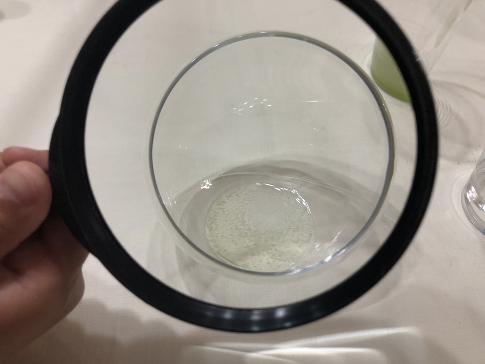 実験結果 × 気泡さえも浮いてこなかった。澄んだ液体のままだった
