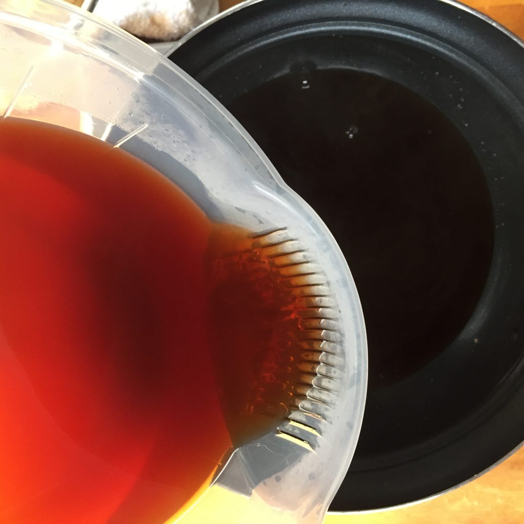 沸騰してから20分くらい煮出し、濾(こ)してから再び鍋に戻す。