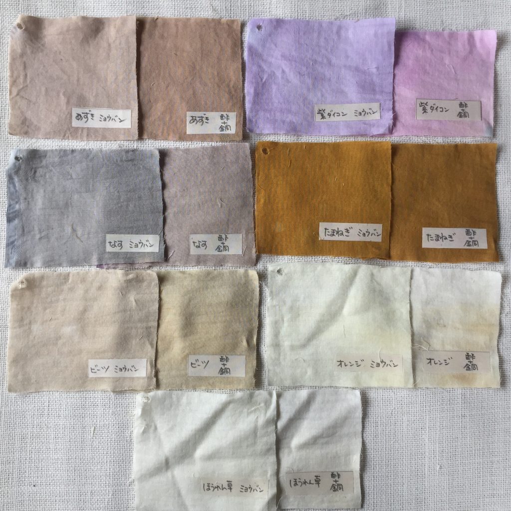 媒染液(ばいせんえき)違いで色が変化することが
