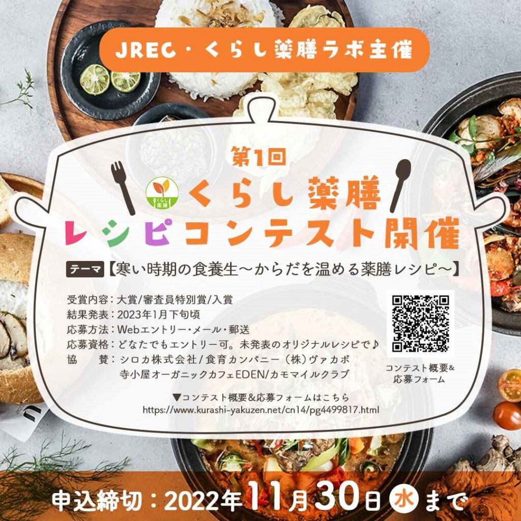 JREC・くらし薬膳ラボ様主催にて「くらし薬膳レシピコンテスト」が開催されます!